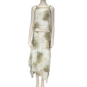 JACQUES RUC Boho Set Assymmetrical Skirt Cami Fairycore Green White sz 10