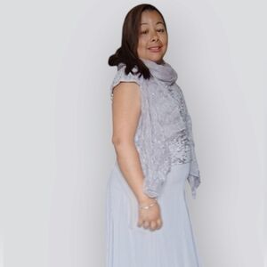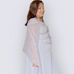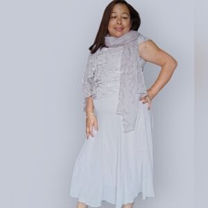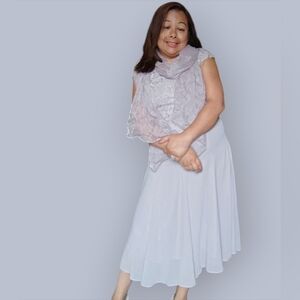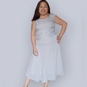 JACQUES VERT WOMENS SMALL FLORAL FORMAL GREY DRESS WEDDING PROM OR GRAD…