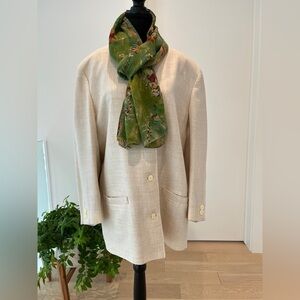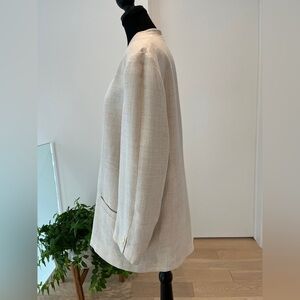 JAEGER Vintage Cream Linen Blend Lined Long Jacket Neutral Coastal Classic Chic