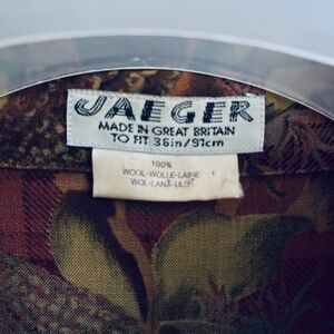JAEGER Vintage Grate Britain 💯 Wool Brown Checked Floral Shirt Blouse Button Up