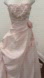 Absolutely stunning JAI blush pink strapless gown featuring intricate beaded embroidery, floral appliqués, and a scalloped sweetheart neckline. Elegant side draping and train create a timeless, romantic silhouette.