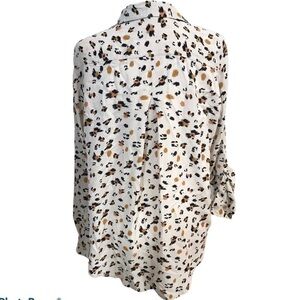 JAK & rae ivory leopard long sleeve button up top sz M
