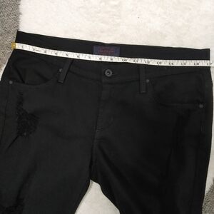 True black factory distressed mid-rise jeans with stretch. In excellent condition. No signs of wear.