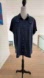 Jamie Sadock front snap short sleeve collared shirt. Dark blue fabric with a sheen. Two chest pockets and a pleat at the centre back. Brand hologram on interior tag. 92% polyester/8% spandex.