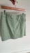 Jamie Sadock sage green skort with solid elastic waistband. Interior shorts. Style 51353. 79% rayon 18% nylon 3% spandex. Two zipper pockets on front and two pockets that close with a snap, one zipper back pocket.