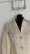 Creme Eye-Let/Lace V-Neck fitted eyelet blouse with 3 funky buttons for closure, sleeves have cuffs. Pattern has a delicate shiny floral pattern. Cotton
