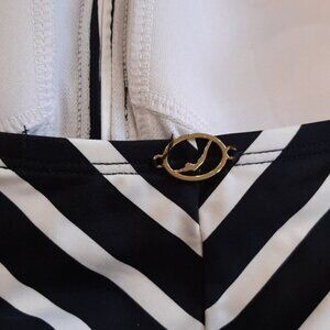 JANTZEN One Piece Swimsuit Striped Halter Keyhole Slimming Tummy Control Padded