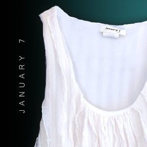 JANUARY 7 ribbed ruffles white tank top, textured shirt, formal tank size S