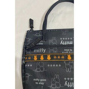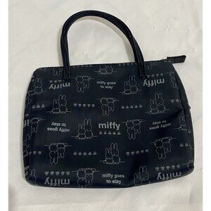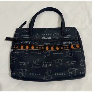 JAPAN Miffy Rabbit Black White Orange Travel Make Up Pouch Bag Purse. It is in good used condition with no tears. Measures 8” long by 6.5” high and 1.25” deep. The straps have a 3.5” drop.
