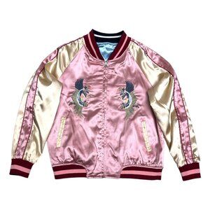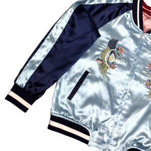 JAPAN SUKAJAN Satin Okinawa REVERSIBLE Tiger Bomber Jacket Womens Medium
