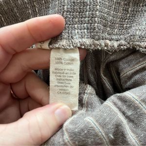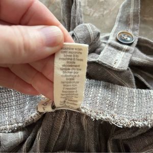 JAPNA Khaki Stripe Linen Romper Jumpsuit Boho Kawaii Bow Back Overall Pant Tie S