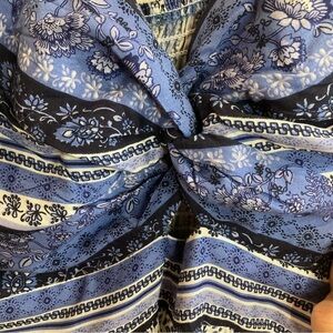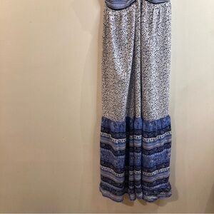 JAPNA Sz L Ruffle Hem Tiered Criss Cross Peep Bodice Spaghetti Straps Maxi Dress. Lovely and soft. Perfect for your next vacation, cruise. Cottage core. Prairie core. Flowy bohemian boho style.