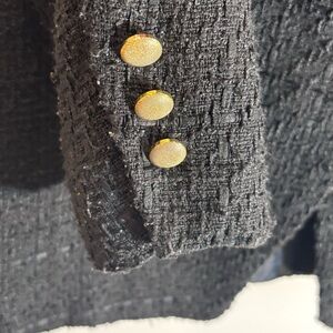 JASON WU Sz L Textured Fabric Double-Breasted Blazer with Gold Toned Buttons. Shoulder pad. Power executive. Chic and sophisticated. Elevate your style with this elegant black double-breasted blazer. Perfect for any occasion, this jacket offers a sophisticated look with its classic design and luxurious feel. Dress up or down.