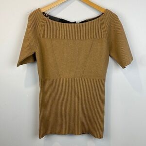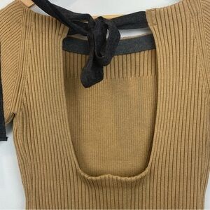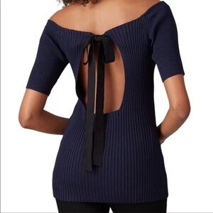 The luxurious feel of this top is next level. Classy off the shoulder neckline featuring contrasting wool ties at the back that create a beautiful low open back cutout. Made of wool and silk blend, this piece can be worn dressed up or paired with jeans for an elevated casual look.