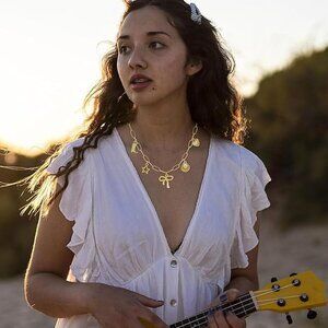 Charm Necklace:The cutest coastal cowgirl charm necklace. Featuring a charming bow charm as the centerpiece with heart, pearl, cowboy boot and star charms, this necklace is the perfect combination of dainty and luscious for everyday wear.
