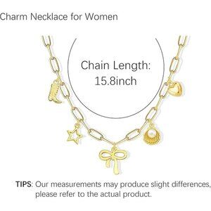 Gold Charm Necklace: The multi-element combination necklace and comes with an extension chain that can be adjusted to fit your neck comfortably.