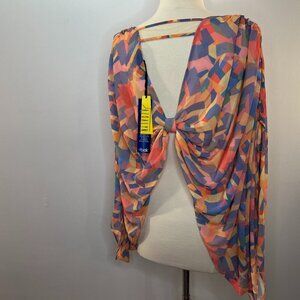 JAZSALYN Women's Coral Combo Open Back Batwing Sleeve Blouse - Size 8 - NWT $108.