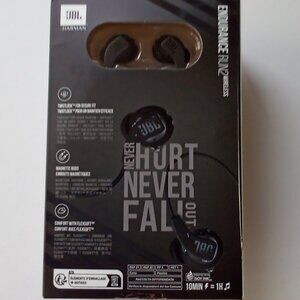 JBL WIRELESS BLUETOOTH EAR BUDS ENDURANCE RUN 2 : The JBL ENDURANCE RUN 2 IN - EAR WIRELESS SPORT HEADPHONES - BLACK. Up to 10 hours of wireless playtime. Hands-free calls. Never hurts and never fall out. MODEL # JBLENDURRUN2BTBLK