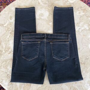 In very good preowned condition J. Brand slim straight leg mid rise jeans in classic dark denim featuring 5 pocket styling, zipper and button closure, and a clean timeless silhouette.