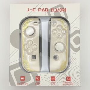 Compatible replacement Joycon controllers for Nintendo Switch. Features wireless connection, 6-axis gyro, dual shock, long battery life. New in box, easy setup. Various color options: ~ Pikachu Black & Yellow ~ Purple & Green ~ Mario Red & White ~ Zelda King Blue & Gold ~ Zelda King White & Gold ~ Pokemon Scarlet & Violet ~ Grey