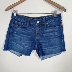 WHAT: J. Crew style A0813. Denim short in dark von wash. Cotton/elastane. Cut off style with factory distressing.
