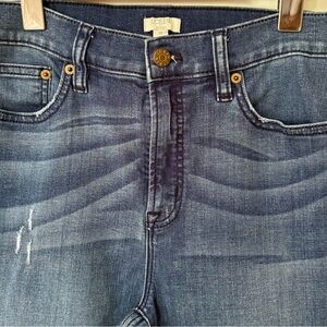 J.Crew classic blue distressed skinny 9” high ride jeans size 29. In good pre-owned condition, laundered and ready to wear.