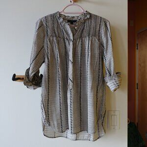 J.Crew AB598 Black Ruffle neck Popover Top Blouse Shadow Stripe XS 0 2