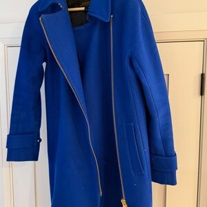 J.Crew Belted Zip Trench Coat in Cobalt Wool Melton
