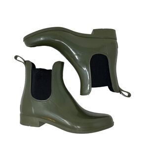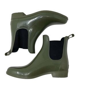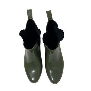 J Crew Chelsea Outdoor Stretch Inset Ankle Rain Boots Olive Green Women's 6. 1" heel. A bit scuffed but otherwise very good condition. Lots of stretch left in the elastic panels.