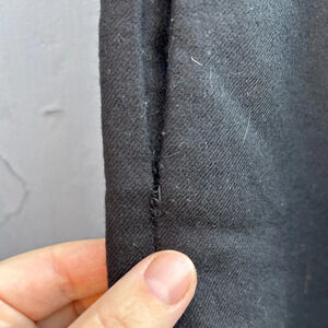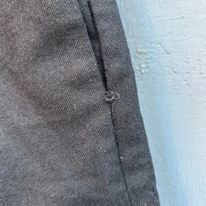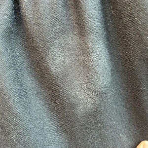 In fair condition. Didn’t notice until I got it outside that there was a mark on it, pictured close up and further away. I have not tried to clean this at all. Priced it low accordingly. Some threads loose at pockets too, pictured.
