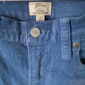 JCrew Lookout High Rise Skinny Corduroy pants size 27 T. Great Condition, gently worn. The fit of the pants is shown in the last picture (**note the pants shown in the picture with the model are grey. These pants are blue).