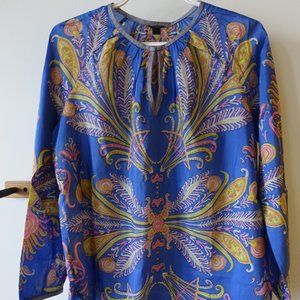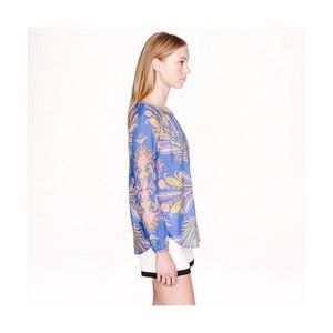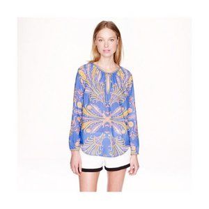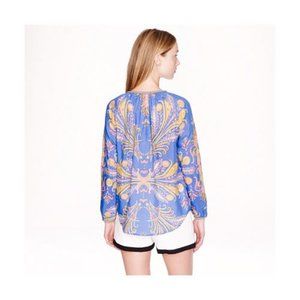 J.Crew Cotton Silk Feather Paisley Printed Blouse popover XS 0 2