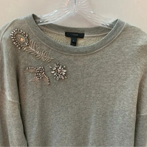 J.Crew Heather Gray Jeweled Embellished Glam Sweatshirt Sweater Top S