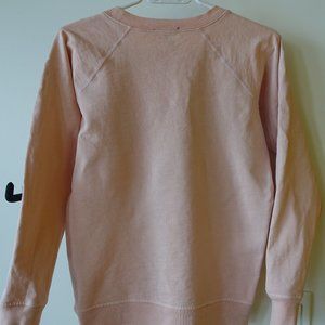 J Crew peachy pink Bonjour Sailor pullover sweatshirt. The paint/bleached splatter detail is intended to give this a distressed/ worn. Super cute and perfect to pair with denim jeans or jeggings.