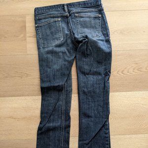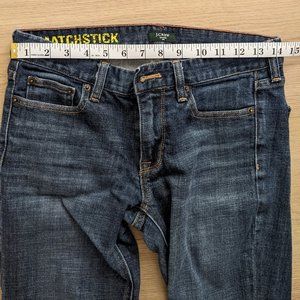 Classic Matchstick Jeans. They sit not too high and not too low - just above hips on me. Slim without that legging, total skinny-jean look. Nice amount of stretch. "Cotton with a hint of stretch" is how J.Crew words it. :) These are a dark-ish rinse.
