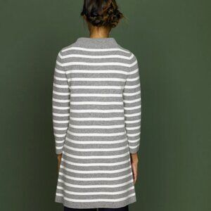 J.Crew KD6774 grey white stripe merino wool sweater cardigan coat XS