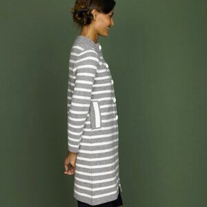 J.Crew KD6774 grey white stripe merino wool sweater cardigan coat XS 0