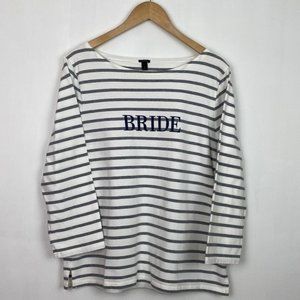 J.Crew L Bride Boatneck Top Striped Gray White Navy Cotton Wedding Bachelorette