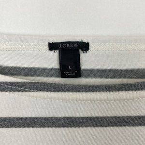 J.Crew Sailor Boatneck Top - Striped - White & Light Gray - Navy "Bride" - 3/4 sleeves - 100% cotton - Very good preloved condition - Minor signs of wash & wear - See pictures for details - Size Large