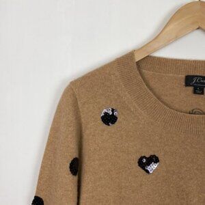J.Crew Sweater - Beige & Black Sequined Polka Dots (+ 1 Heart) - 100% Cashmere - Excellent preloved condition - Minor signs of wear - Some sequins are a bit loose or missing - See pictures for detail - Size Large