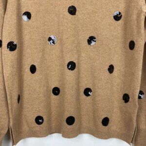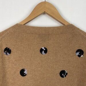J.Crew L Cashmere Sweater Beige Black Sequins Polka Dots
