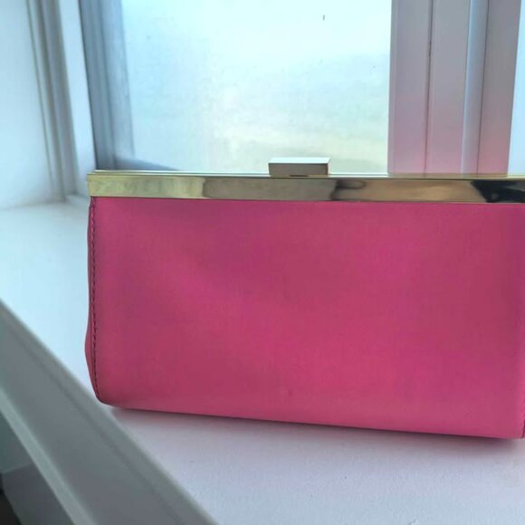 Beautiful J.Crew pink leather clutch with a sleek gold-tone frame and kiss-lock closure.