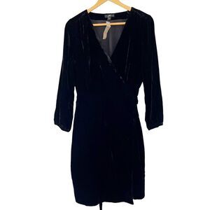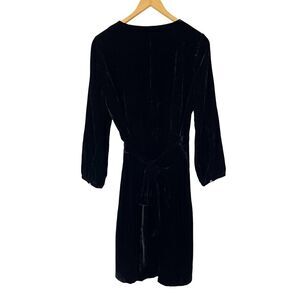 J.Crew, NWT, black velvet dress, classic wrap dress, K0145, holiday party dress, formal dress, velvet wrap, long sleeve dress, cocktail attire, evening wear, winter event outfit, timeless style, luxe fabric, flattering fit, elegant silhouette, LBD, date night dress, minimalist chic, soft velvet, occasion dress, Poshmark fashion, Depop style, elevated basics, wardrobe essential, designer wrap dress.