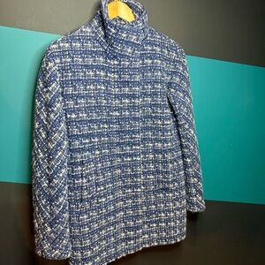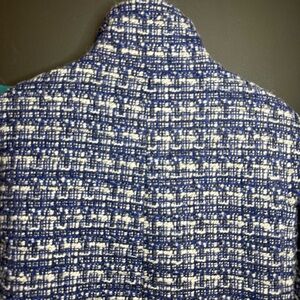Elegant navy and white tweed jacket by J.Crew. Features a stylish design for a sophisticated look.
