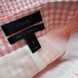 J.Crew No.2 Pencil Skirt - Gingham Pink/White, Size 0