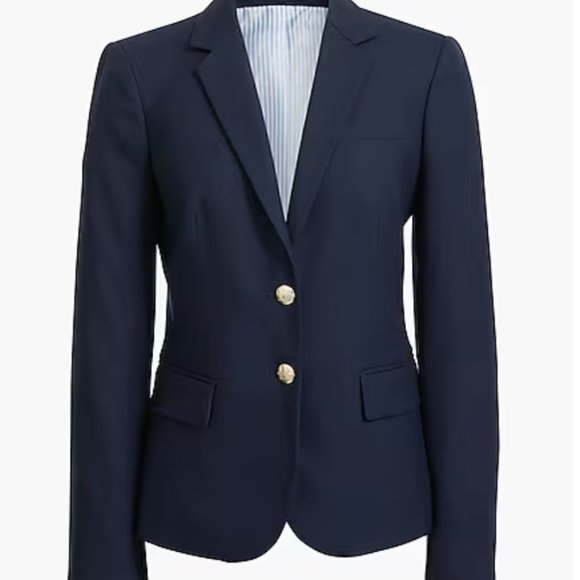 Wool/polyester, hits above hip, notch collar with felt undercollar.