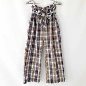 J.Crew Paperbag High Rise Tie Waist Plaid Pants Wide Leg Cropped Matching Belt