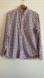 J.Crew. Plaid, Checked: plum purple, white. Button down. Long sleeves. Rounded hem. 100% cotton. Good used condition: two small marks, slight yellowing of collar.