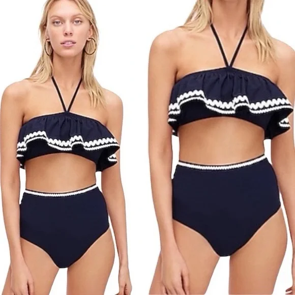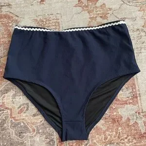J.Crew rickrack bikini bottoms. New without tags. Excellent condition. Wide coverage high waisted bottoms. Textured exterior with decorative top trim. Comfortable lightweight fabric blend.