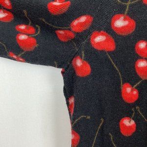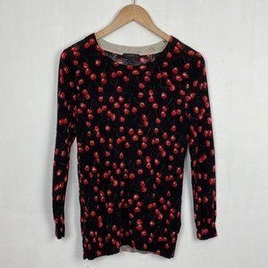 J.Crew S Cherry Print Tippi Sweater Black & Red 100% Merino Wool